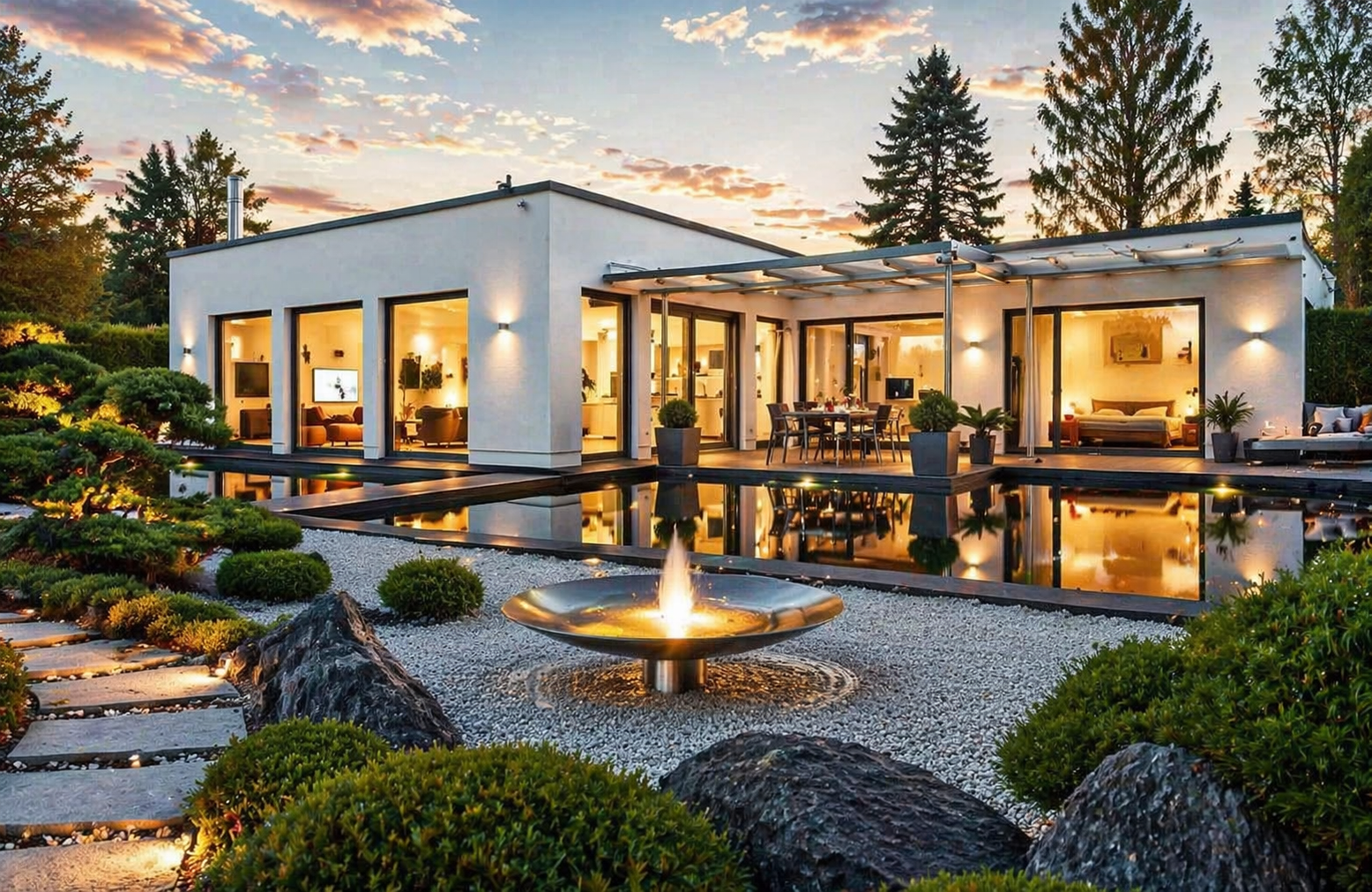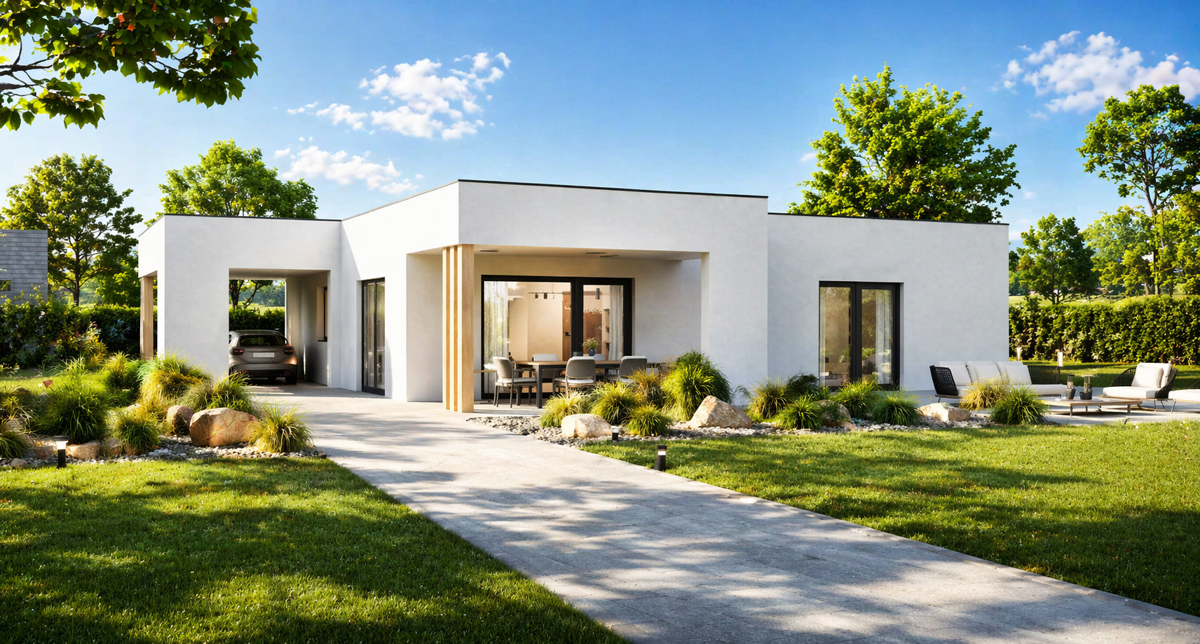 • Moderní bungalovy: Charakteristické čistými liniemi, velkými okny a otevřenými dispozicemi.