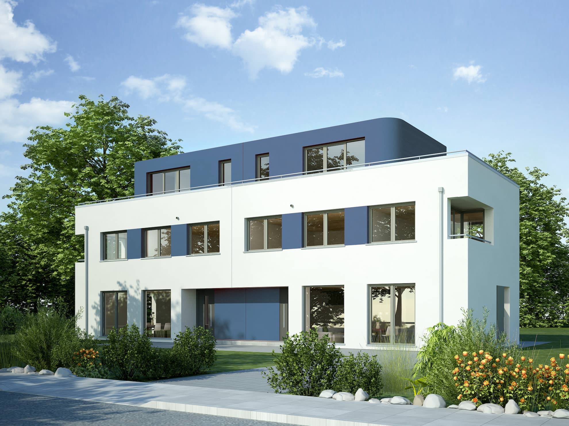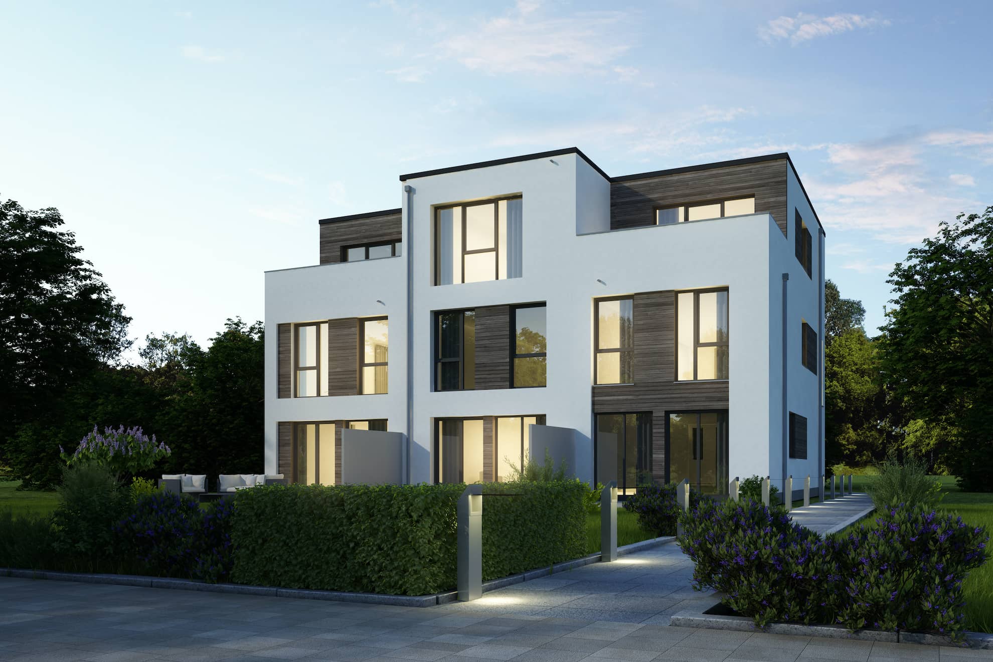 Viele moderne Doppelhäuser können auch als Mehrgenerationenhäuser konzipiert werden, in denen mehrere Generationen unter einem Dach leben, aber dennoch ihre eigenen abgeschlossenen Bereiche haben.