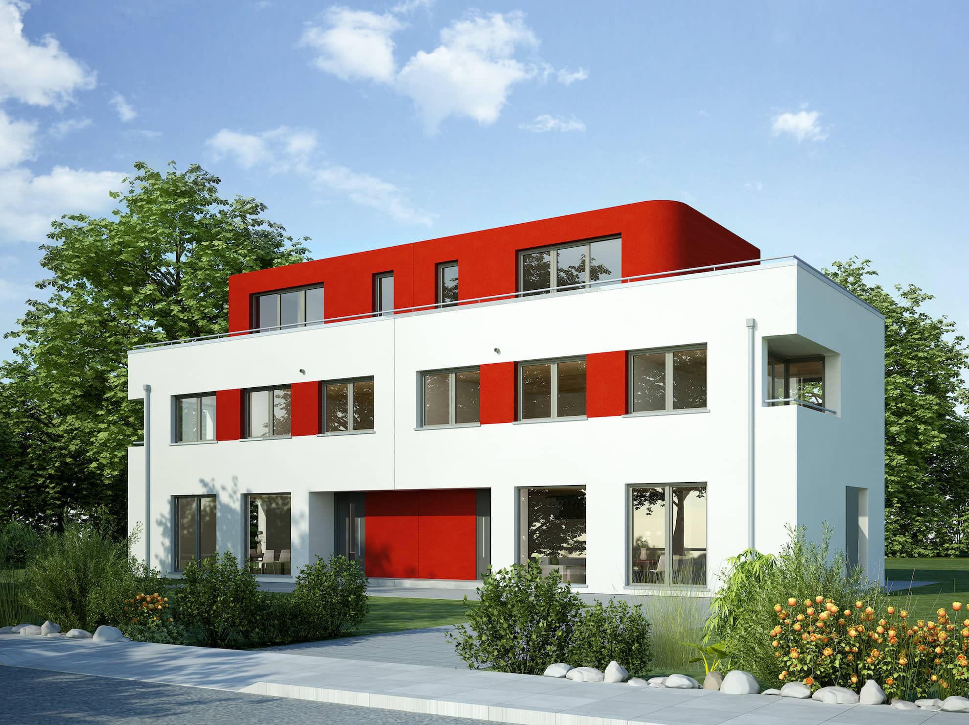 Doppelhäuser können in verschiedenen architektonischen Stilen gestaltet werden. Von modernen, minimalistischen Designs bis hin zu traditionellen Bauweisen oder Landhausstilen – die Vielfalt ist groß und ermöglicht individuelle Gestaltungsmöglichkeiten.