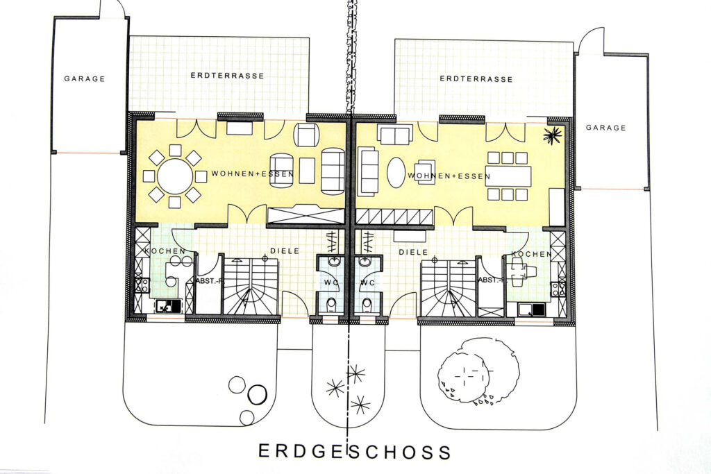 Doppelhäuser bieten häufig sowohl private als auch gemeinschaftliche Außenbereiche. Das kann einen eigenen Garten, ein Patio oder Terrassen umfassen, die den Bewohnern Freiraum zum Entspannen und für Freizeitaktivitäten bieten.