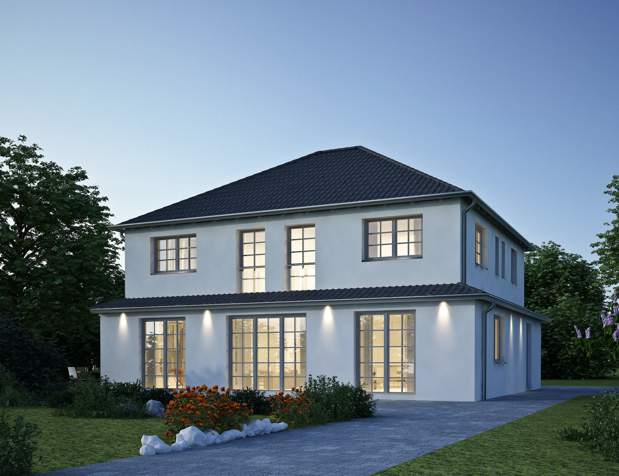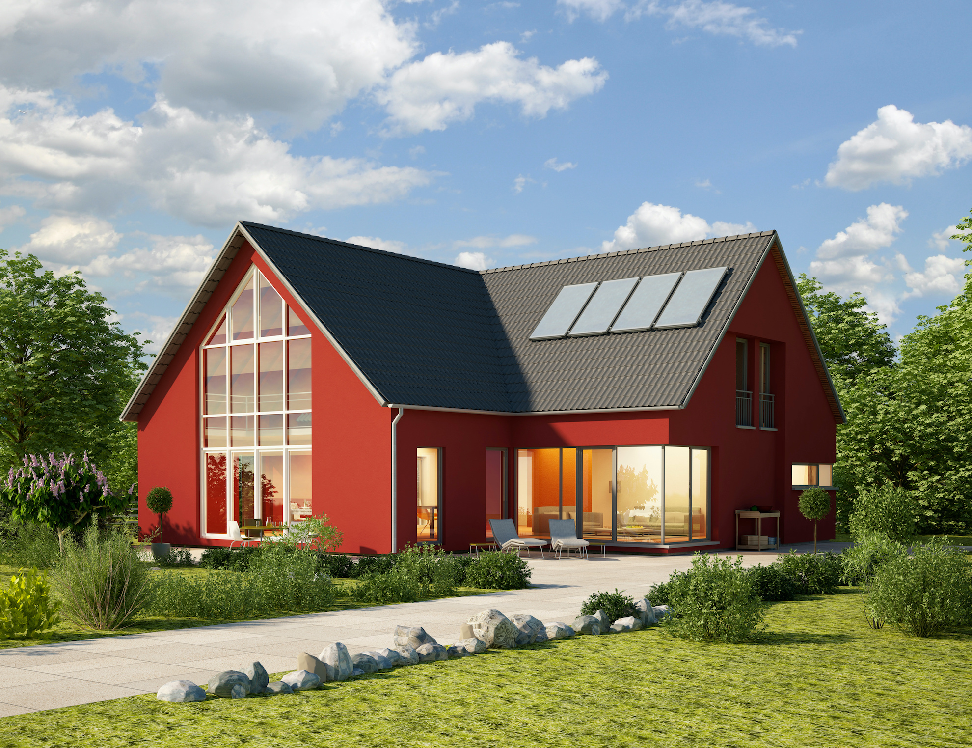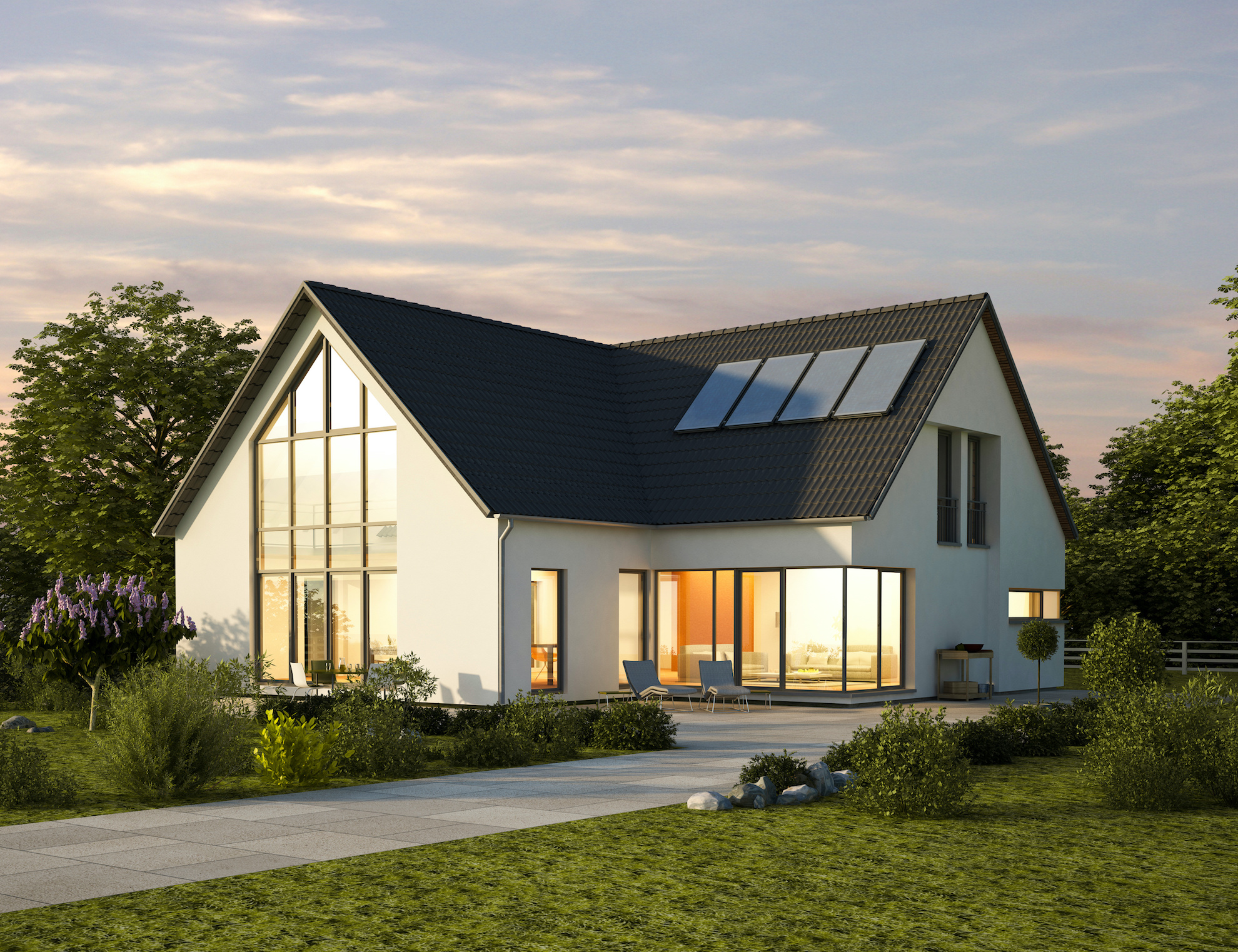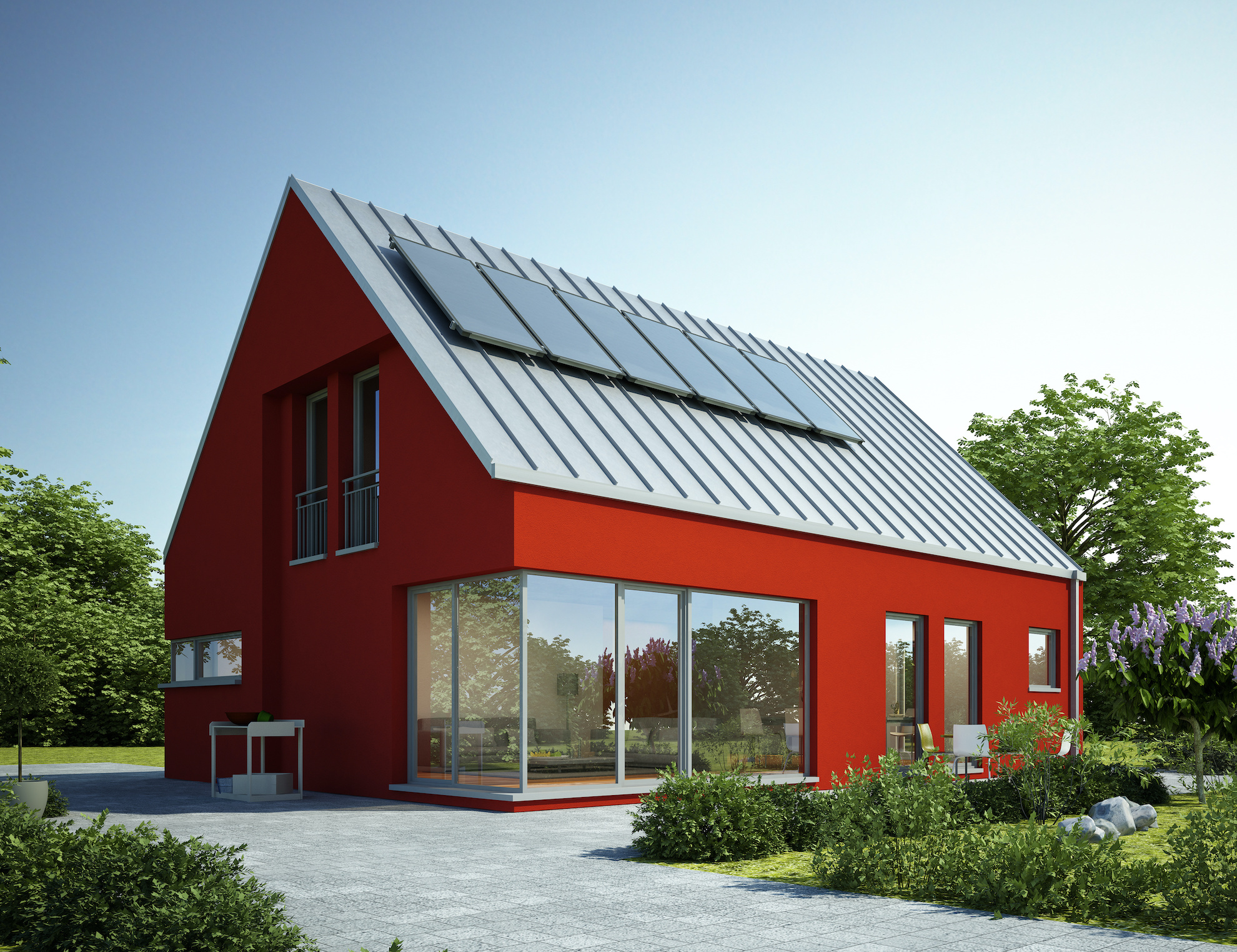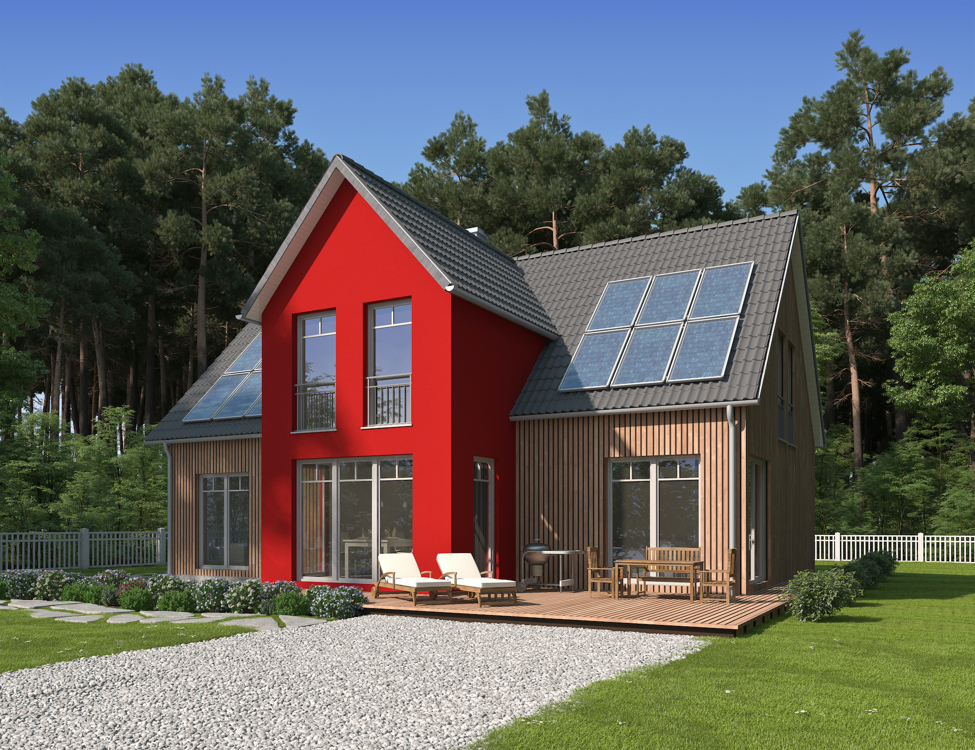 Viele moderne Einfamilienhäuser werden mit einem Fokus auf Nachhaltigkeit gebaut. Dazu gehören: